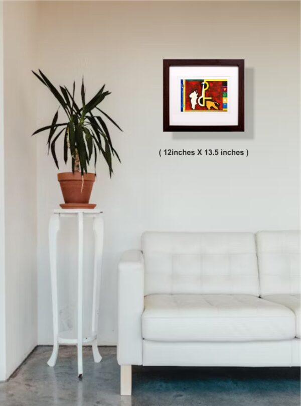 - Material – You can choose between different print mediums (Giclée paper or Canvas) and framing options that you can see in the product category. Any order above 18 x 24 inches is processed in a wood frame, since synthetic wood is not able to bear its load. Wherever applicable, acrylic glass is used instead of normal glass, for its ease of handling and recyclability.