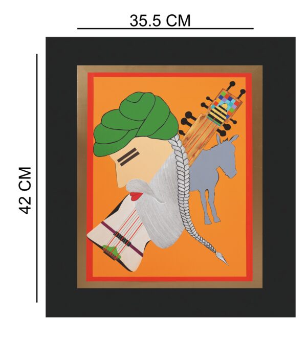 Musical Instrument Cut-Out: Evoking the moment when Bulleh Shah danced with passionate intensity to the sound of music, ultimately softening the resistance of his Guru. Through these layered symbols, the artwork captures the essence of Bulleh Shah’s unwavering love, humility, and spiritual submission to his Guru—making devotion itself the highest form of art.