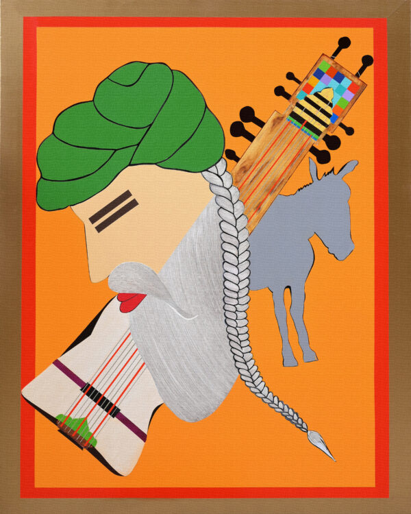 Musical Instrument Cut-Out: Evoking the moment when Bulleh Shah danced with passionate intensity to the sound of music, ultimately softening the resistance of his Guru. Through these layered symbols, the artwork captures the essence of Bulleh Shah’s unwavering love, humility, and spiritual submission to his Guru—making devotion itself the highest form of art.