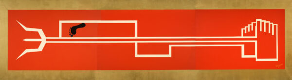 Samsadhya(art of accomplishing something in a peaceable way). The Artwork sketches this side of Mahadev as a great strategist who knew how to resolve the most destructive/abstruse of situations in a Peaceful way.The “Trishul”(trident) betokens Lord Shiva & the impression of Foot(on Lord Shiva’s chest) portrays Goddess Kali who as soon as realizing the need regains her Motherly side (Goddess Parvati) & stops the carnage.