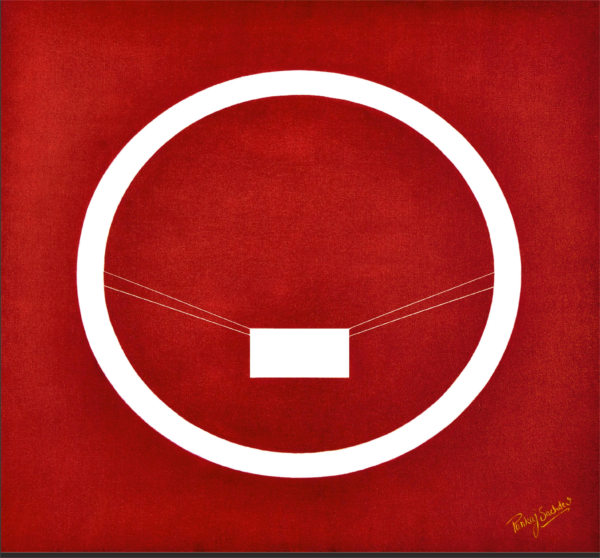 अनन्त के साथ साक्षात्कार करने के लिए जीवन में व्यर्थ चीजों और विचारों से खाली हो जाना (स्वयं को शून्य कर लेना) जिस के फल स्वरूप ही मानव सचाई से परिपूर्ण हो सकेगा क्यूंकि आत्मा अज्ञानता के कारण कर्मों के बंधन में फँसी हुई है– और मोक्ष की तरफ बढ़ने के लिए विचारों की शून्यता अनिवार्य है । कलाकृति में दिख रही पट्टी भगवान् महावीर की अहिंसा से संबंधित विचारधारा को दर्शाती है।